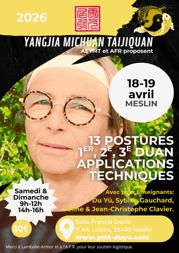 18-19 AVRIL 2026 * 13 postures 1e, 2e, 3e Duan-Applications Techniques 15/04/202630/03/2026 par Du Yü Imprimer le PDF de l’affiche Ici Imprimer le Bulletin d’inscription Ici