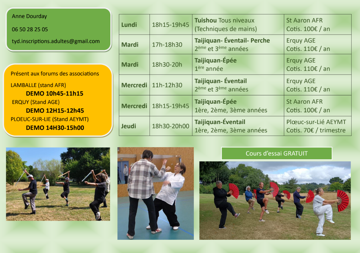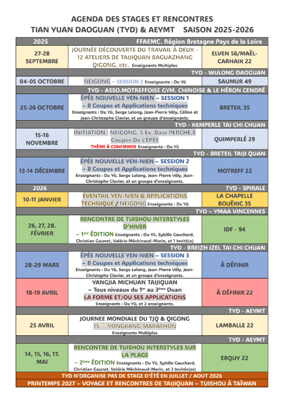 Classes et stages de Taijiquan au Tian-Yuan Daoguan